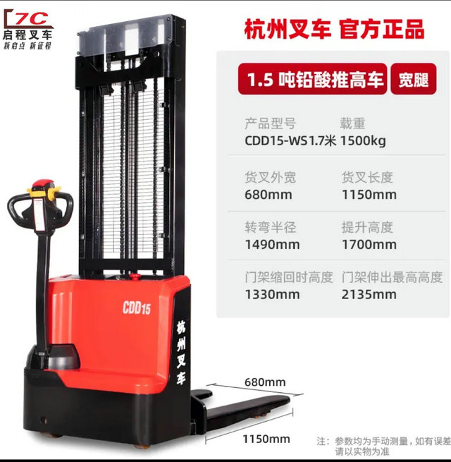 CDD15-WS 1500kg 货叉外宽680mm 货叉长 1150mm